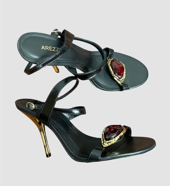 Sandália preto com salto dourado TAM 38